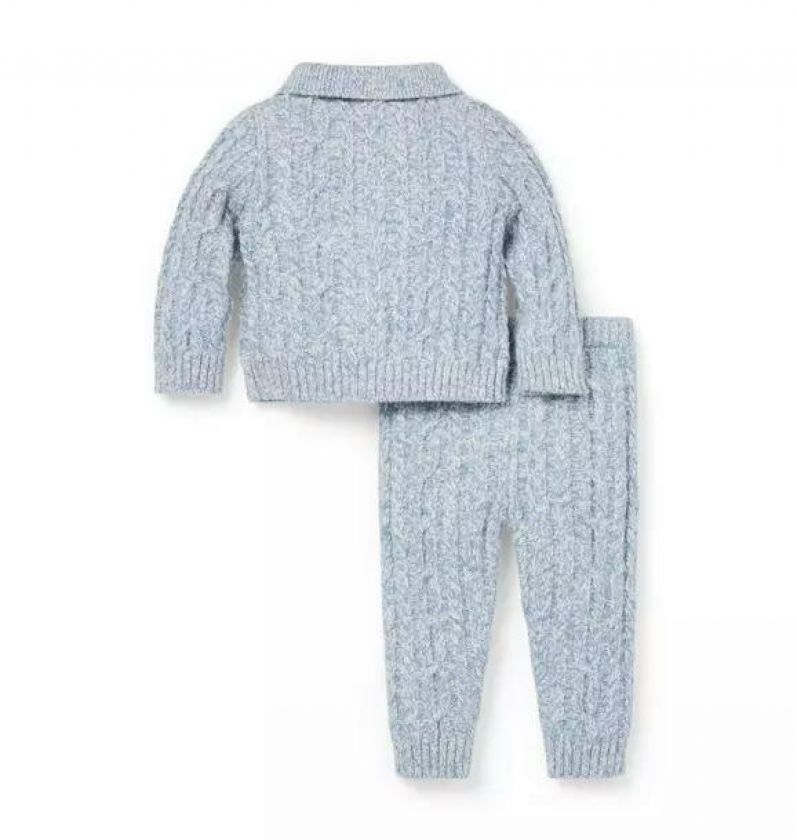 Made for cozy moments, wear-ever baby goes. Our soft sweater set features cable knit details, plus ribbed details and a little collar too.