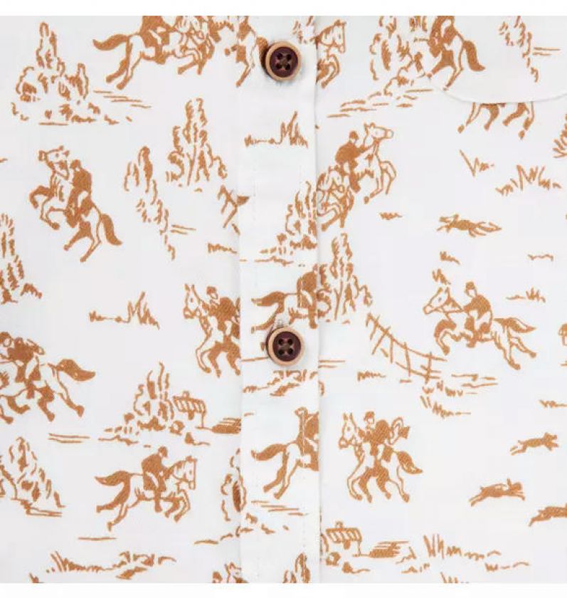 Saddle up in style with our matching set in soft cotton twill. Featuring an allover western toile, chest pocket and a little bow at the waist, it's perfect for first adventures.