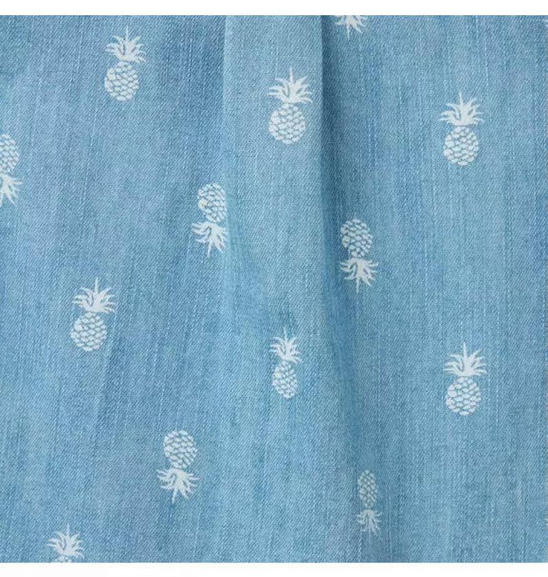Our short set in soft chambray is the perfect match for sweet first moments. With an allover pineapple print and a little back pocket, just because.
