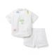 Embroidered tropical friends make the perfect match for baby's first sunny days. Designed in soft linen-cotton with a little back pocket, just because.