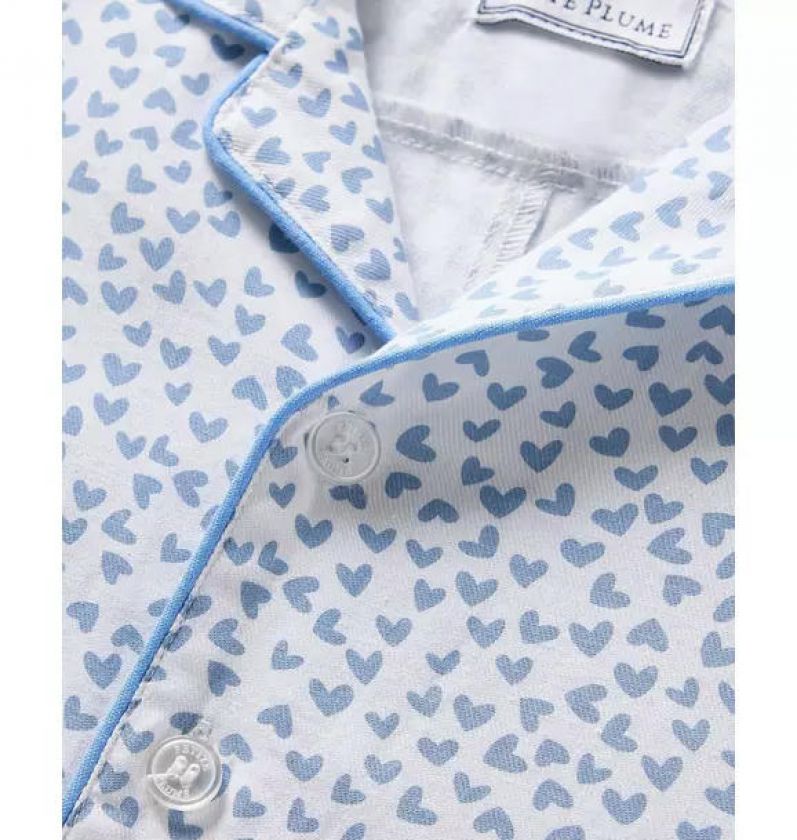 The lovely new Bluehearts design is a minimalist’s match made in heaven. This Classic Short Set is accented with, contrast piping and finished with buttons.