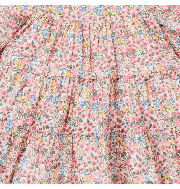 Our ditsy floral dress is ready for first moments. Featuring a tiered silhouette and an eyelet ruffle collar.
