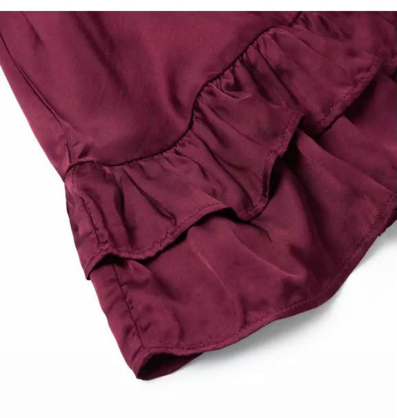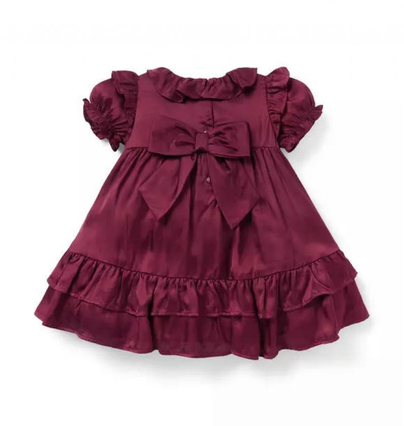 All of our favorite details for this dress in standout satin. With ruffles, puff sleeves and a bow at the back, it’s just right for any occasion.