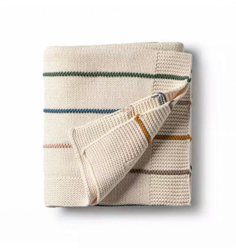 Featuring dimensional stripes in shades of the rainbow. This cozy blanket will keep your little one warm and snuggly all year