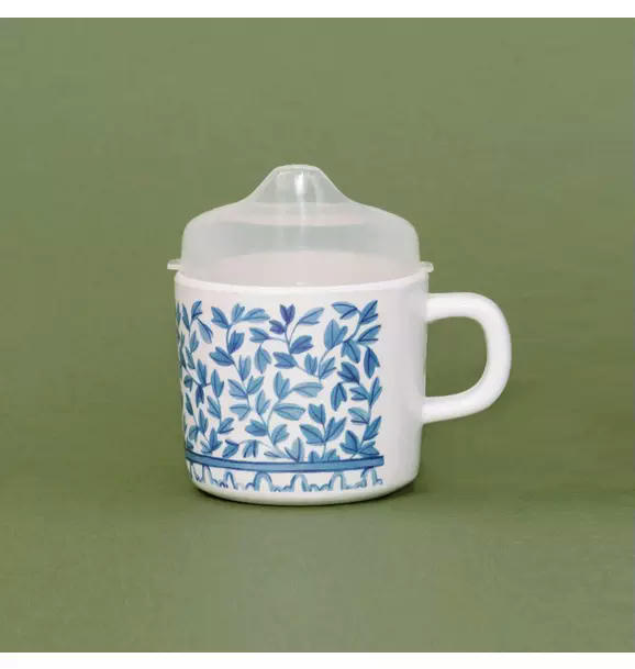 This easy-to-clean melamine sippy cup features a watercolor take on classic blue-and-white Chinese ceramics, with a durable, dishwasher-safe design and a removable, leak-resistant top for an effortless transition to a toddler mug.