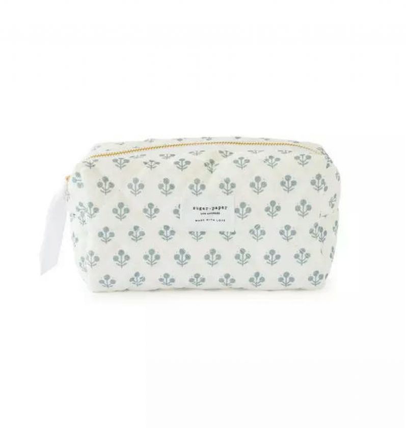 Catch all. An everyday essential with Sugar Paper style inside and out, the Cosmetic Pouch is a fabric bound pouch featuring pretty patterns from our very special collection with Wallshoppe, gold zipper details and a waterproof lining for holding your cosmetics and daily essentials with elegant ease.