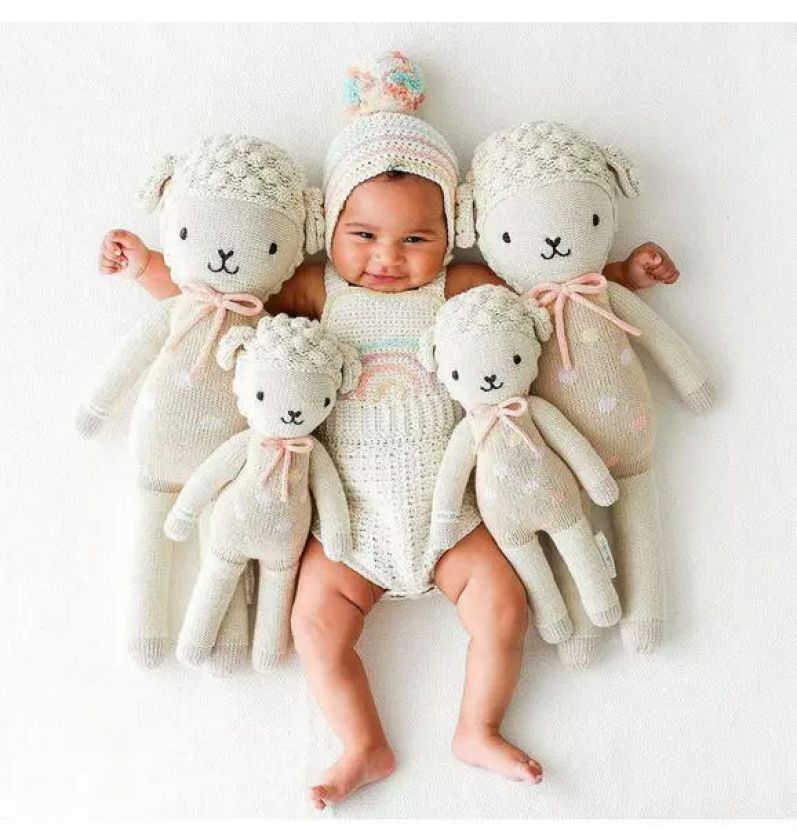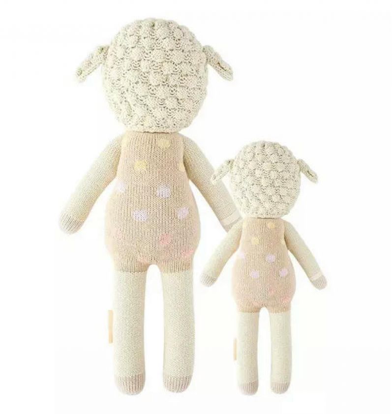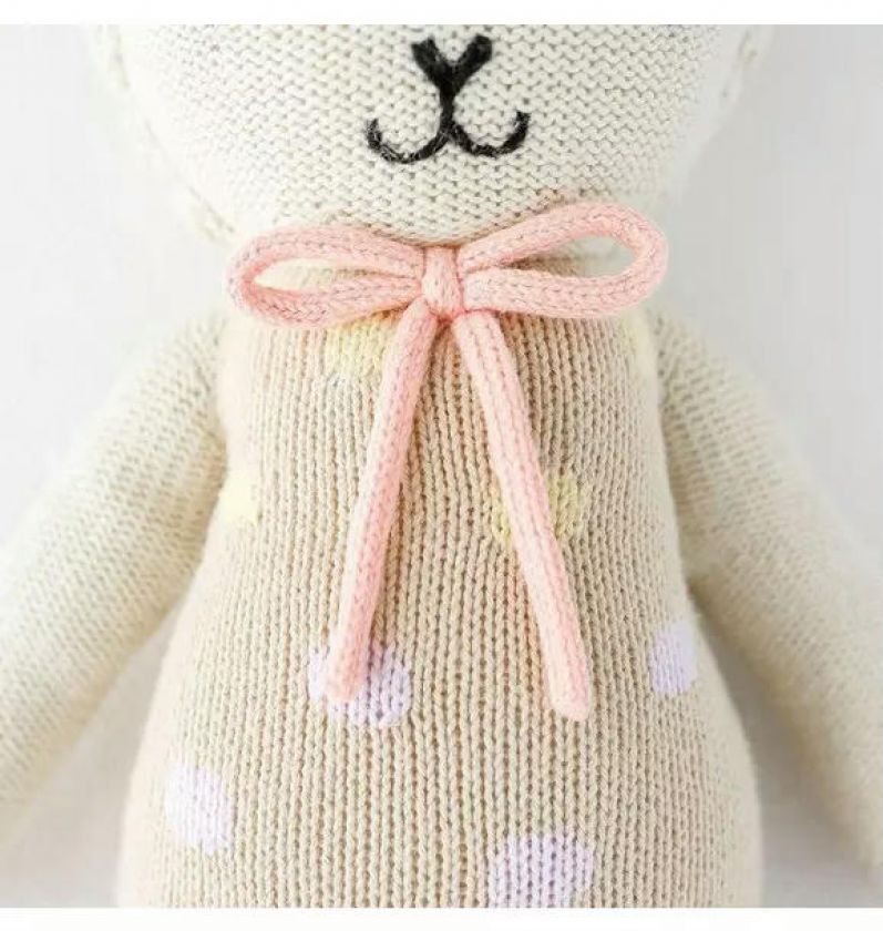 Hand knit doll with premium 100% cotton yarn. High stitch count for durability and softness.