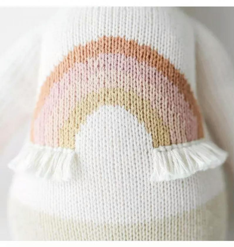 Hand knit doll with premium 100% cotton yarn. High stitch count for durability and softness.