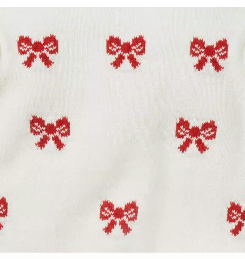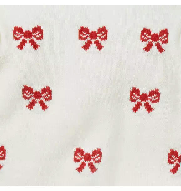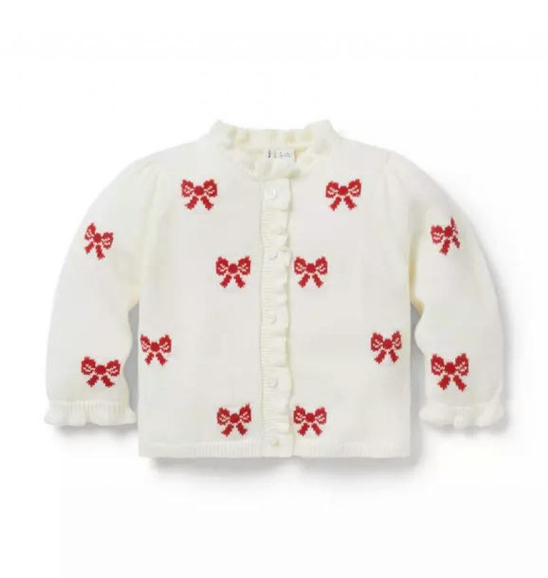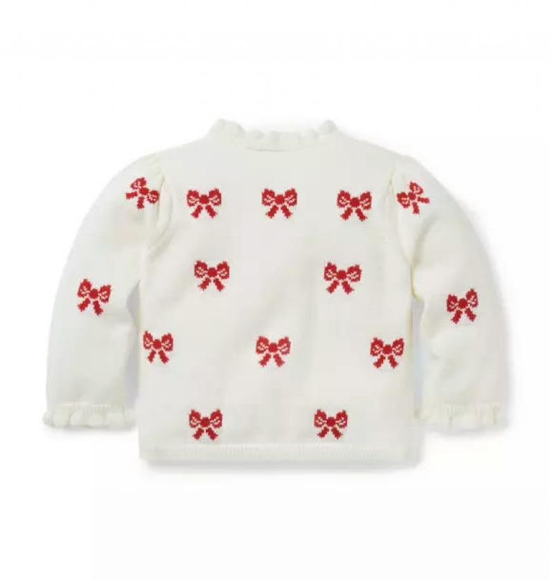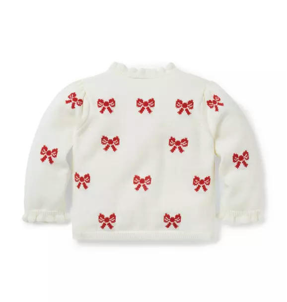 For bow-tied traditions and moments to remember, reach for this soft cotton cardigan. Designed with intarsia-knit bows and ruffle details.