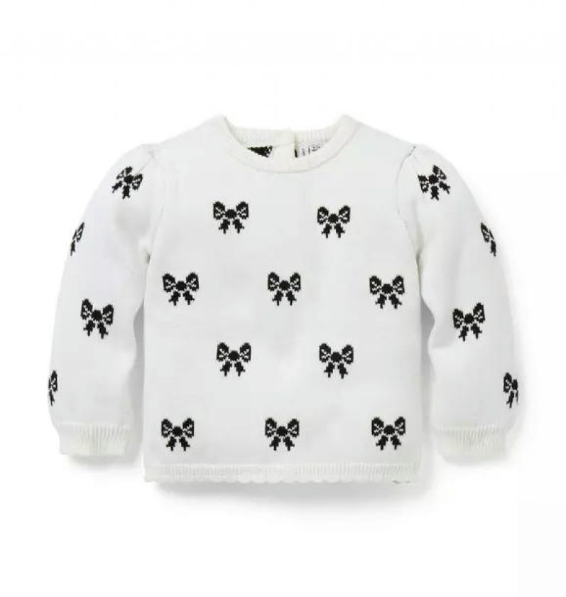 Our soft sweater is just right for first moments. In an allover textured knit with intarsia-knit bows, puff sleeves and ribbed trim, plus a scalloped hem.