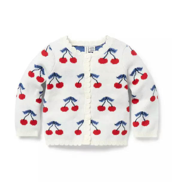The sweetest pick for first moments? Our cozy cardigan featuring intarsia-knit cherries and ribbed details too.