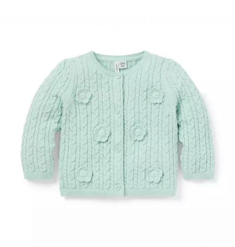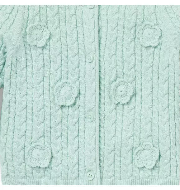 A bouquet of special details for this cardigan in pure, soft cotton. With allover cable knit, 3D flower details and puffed sleeves, it's a fresh pick for every first.