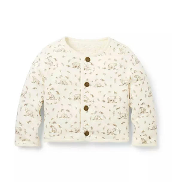 Our cozy reversible jacket is baby's favorite layer, all season long. Featuring faux sherpa, ribbed details and pockets on one side and a bear toile on the other.
