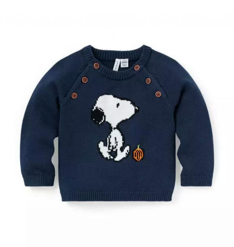 For baby's first autumn looks, reach for our sweater in soft, pure cotton. With an intarsia-knit Snoopy and pumpkin design.