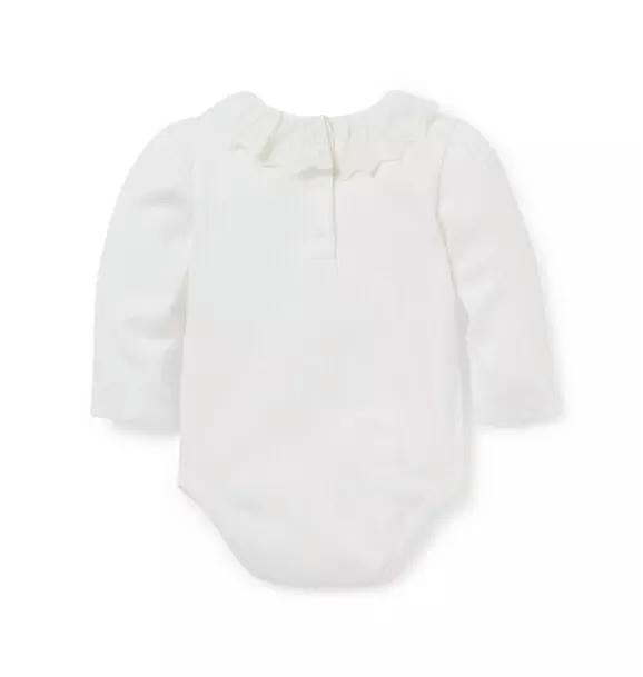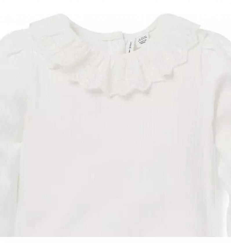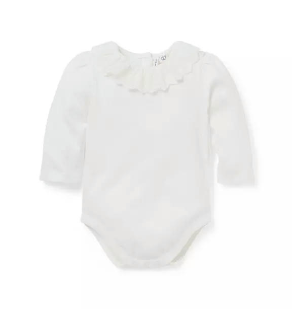 An everyday essential for baby, made extra special in soft cotton pointelle. With a ruffle collar and eyelet trim for extra frills.