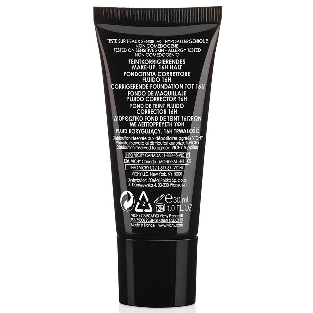 Тональный крем Vichy Dermablend с высокой степенью покрытия для коррекции тона кожи. Маскирует покраснения, пигментные пятна, черные точки, темные круги под глазами, сосудистые звездочки и мелкие шрамы. Обеспечивает ровный естественный тон без эффекта маски до 16 часов с SPF 35. Подходит для проблемной кожи.