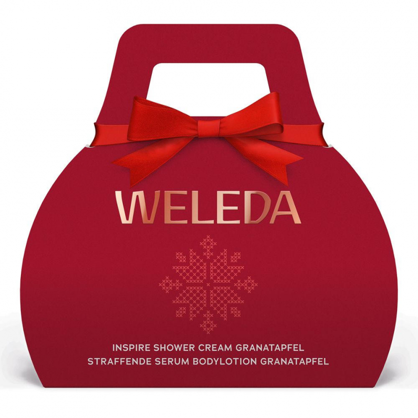Мини-подарочный набор Weleda Granatapfel 2025 включает гель для душа и укрепляющую сыворотку-лосьон для тела с гранатовым маслом. Набор предназначен для ухода за кожей, обладает антивозрастным действием и подходит для путешествий или в качестве подарка.