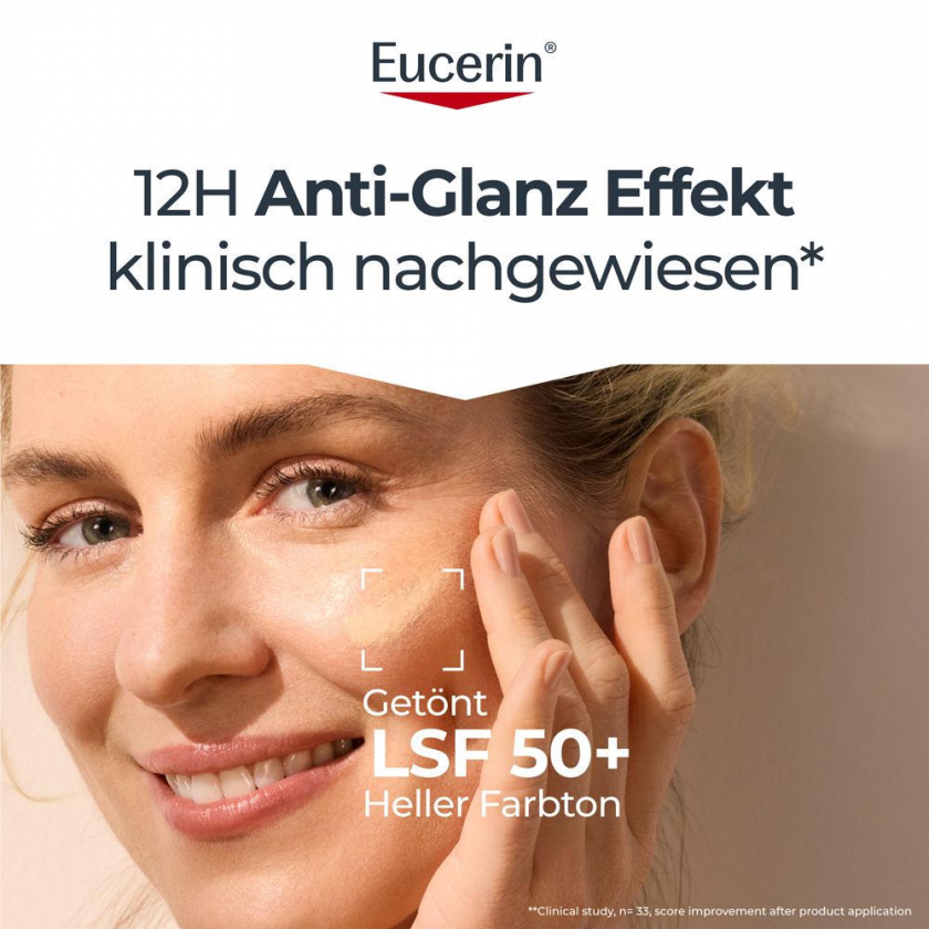 Eucerin® Oil Control Tinted Face Sun Gel-Creme mit LSF 50+ – getönter Sonnenschutz für fettige und unreine Haut – Hell - Jetzt 20% sparen mit Code "eucerin20"