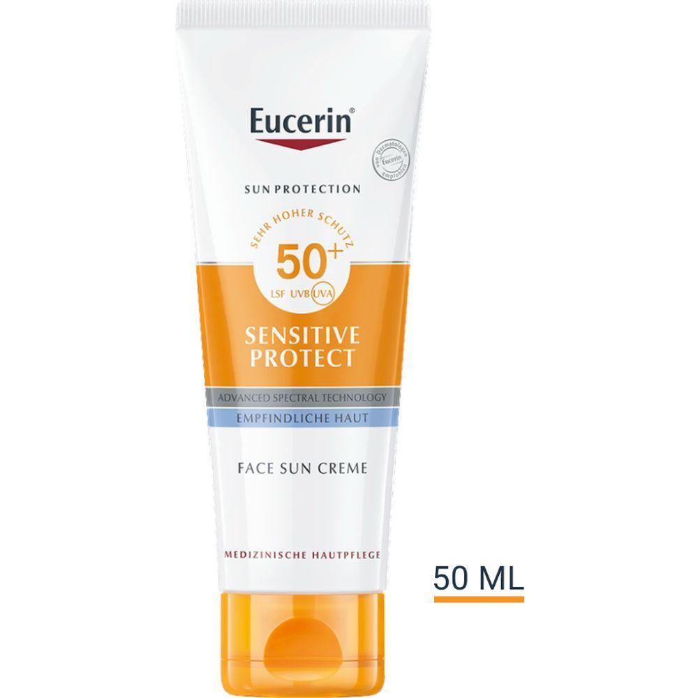 Eucerin® Sensitive Protect Face Sun Creme LSF 50+ – sehr hoher Sonnenschutz für trockene und empfindliche Gesichtshaut - Jetzt 20% sparen mit Code "eucerin20"