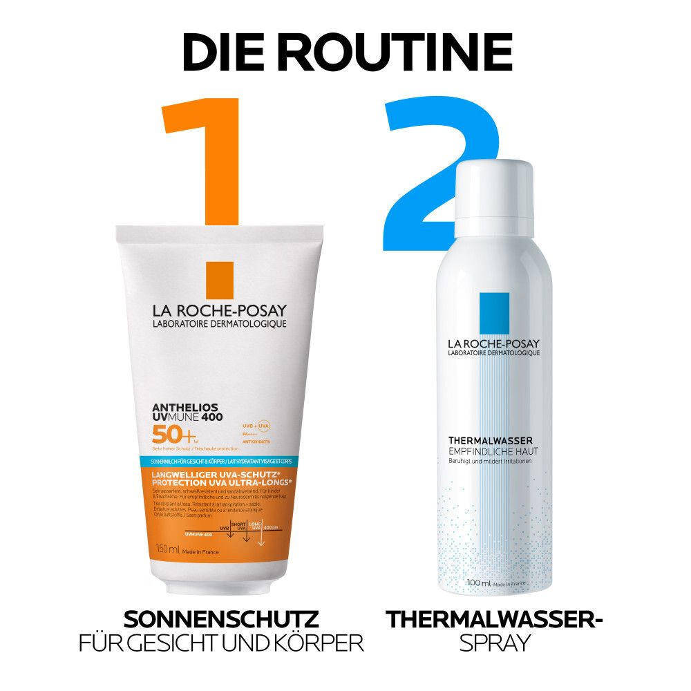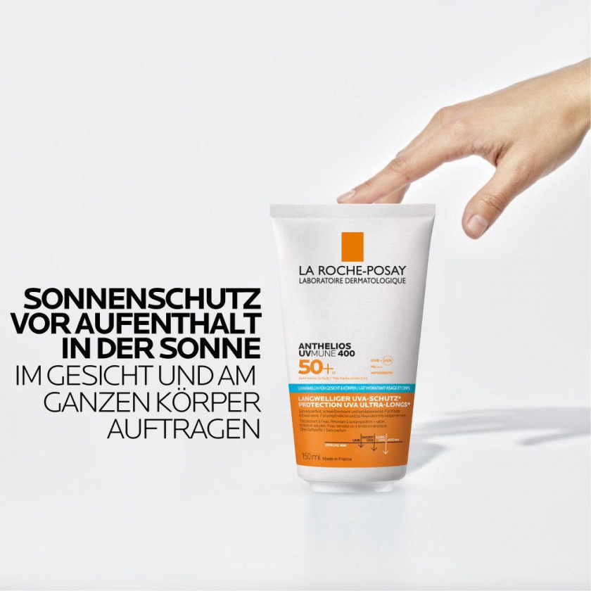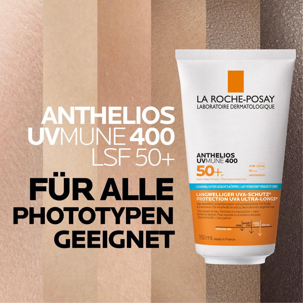La Roche Posay Anthelios UV Mune 400 Hydratisierende Gesicht + Körper Milch LSF 50+ mit Mexoryl 400, Vitamin E und Glycerin + LRP Mini Vitamin C12 Serum 10ml GRATIS