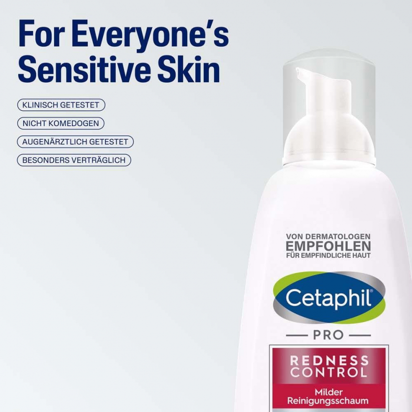 Мягкая очищающая пенка для лица Cetaphil PRO RednessControl для кожи, склонной к покраснениям и розацеа. Бережно очищает, уменьшает сухость, стянутость, зуд и жжение. Содержит аллантоин и экстракт корня солодки для успокоения кожи. Без мыла и отдушек.