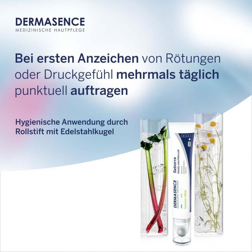 DERMASENCE Seborra Akutroller Gel - точечное средство для лечения первых признаков акне в форме роллера. Содержит экстракт босвеллии против покраснений и отеков, глюконолактон для предотвращения комедонов, мочевину и салициловую кислоту. Обеспечивает гигиеничное нанесение благодаря роллеру с нержавеющей сталью.