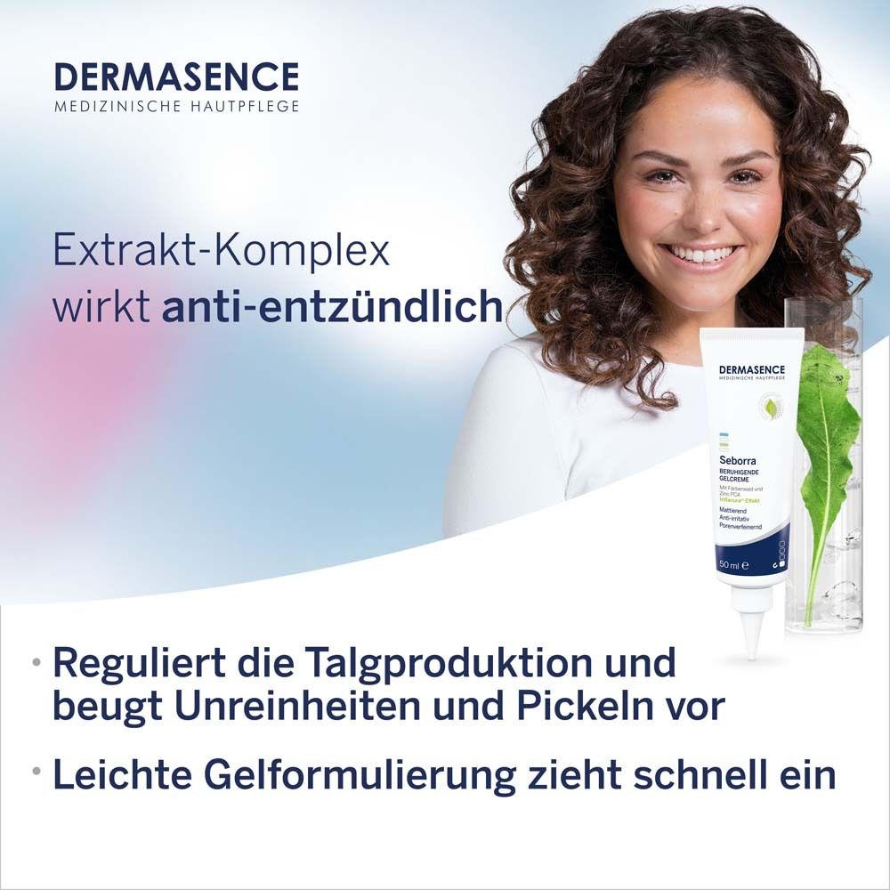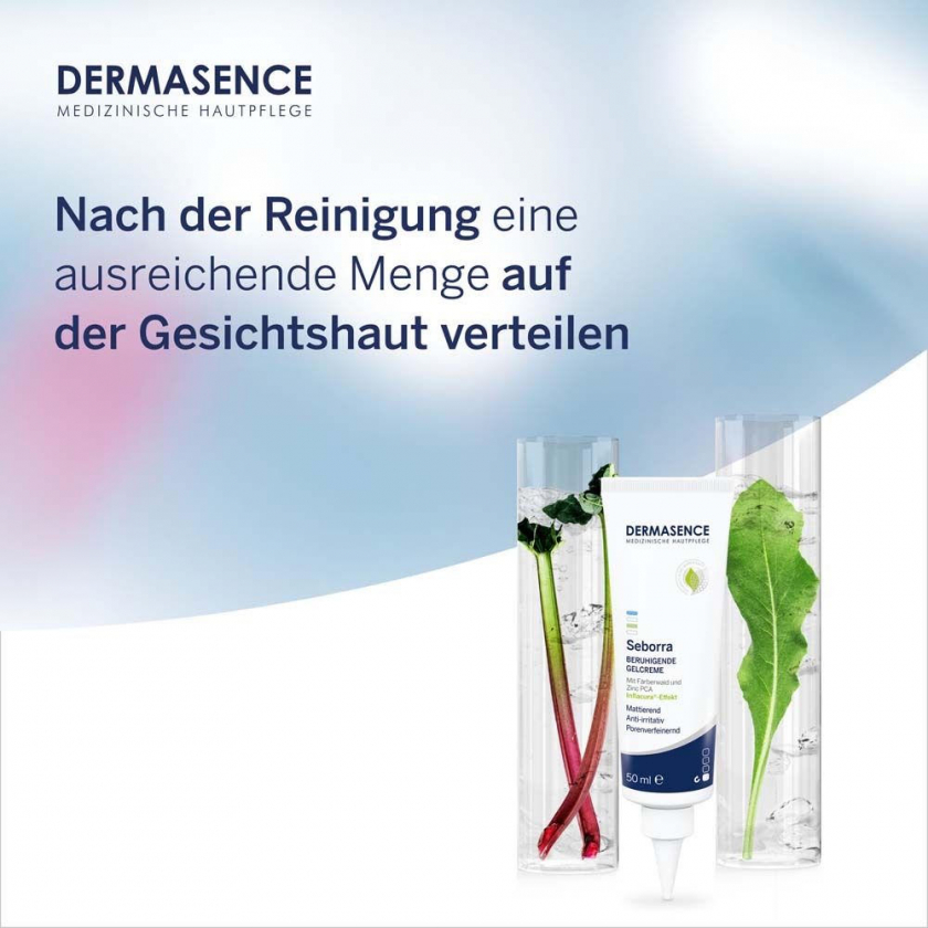 Успокаивающая гель-крем Dermasence Seborra для жирной, склонной к акне кожи. Содержит ниацинамид и экстракт-комплекс, оказывает противовоспалительное действие, матирует кожу, регулирует выработку кожного сала и предотвращает появление несовершенств. Легкая гелевая текстура быстро впитывается.