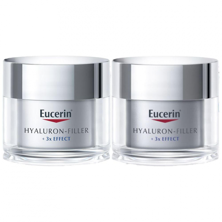 Набор Eucerin Hyaluron-Filler: дневной и ночной кремы для нормальной и комбинированной кожи с гиалуроновой кислотой и сапонином для эффективного заполнения морщин. Дневной крем содержит SPF 15 и UVA-защиту, оба крема клинически протестированы и подходят для борьбы с возрастными изменениями кожи.