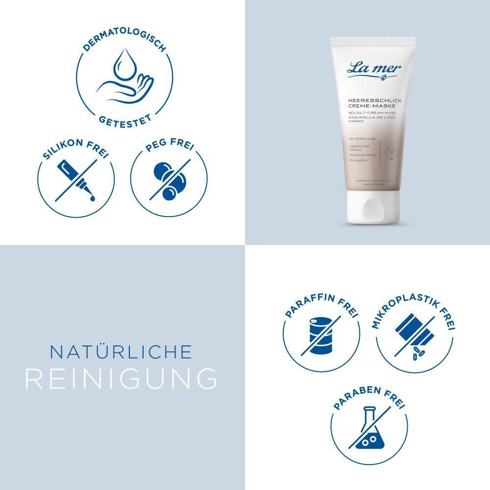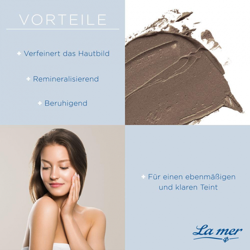 Маска-крем с морским илом La mer для ухода за кожей лица. Обладает выравнивающим, минерализующим и успокаивающим действием, содержит экстракт морского ила, пантенол и витамин А. Подходит для очищения и улучшения состояния кожи, обеспечивает эффект маски и пилинга одновременно.