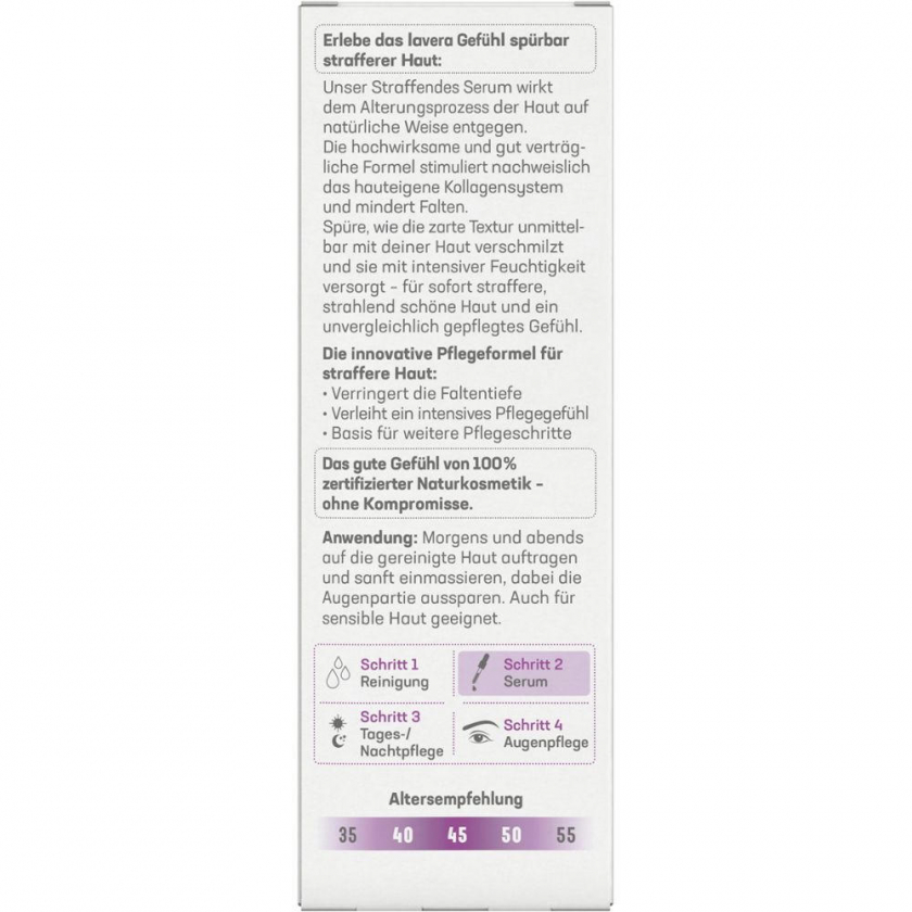 Сыворотка для лица lavera с 3-кратной гиалуроновой кислотой и бакухиолом для упругости кожи. Уменьшает глубину морщин, интенсивно увлажняет и питает кожу. Подходит для чувствительной кожи, является натуральной косметикой. Применяется утром и вечером.