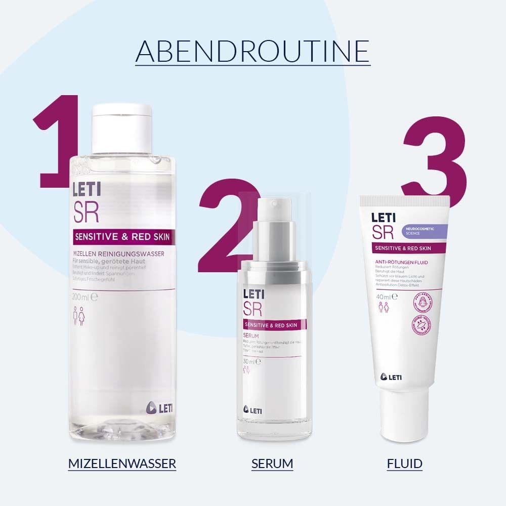 LETI SR Anti-Rötungen Fluid - высококонцентрированная сыворотка для чувствительной и покрасневшей кожи лица. Эффективно уменьшает покраснения, успокаивает кожу, борется с куперозом и розацеа подтипа I. Содержит экстракты одуванчика, шизандры и физалиса для защиты от загрязнений воздуха и синего света. Быстро впитывается, нежирная текстура, без отдушек, дерматологически протестировано.