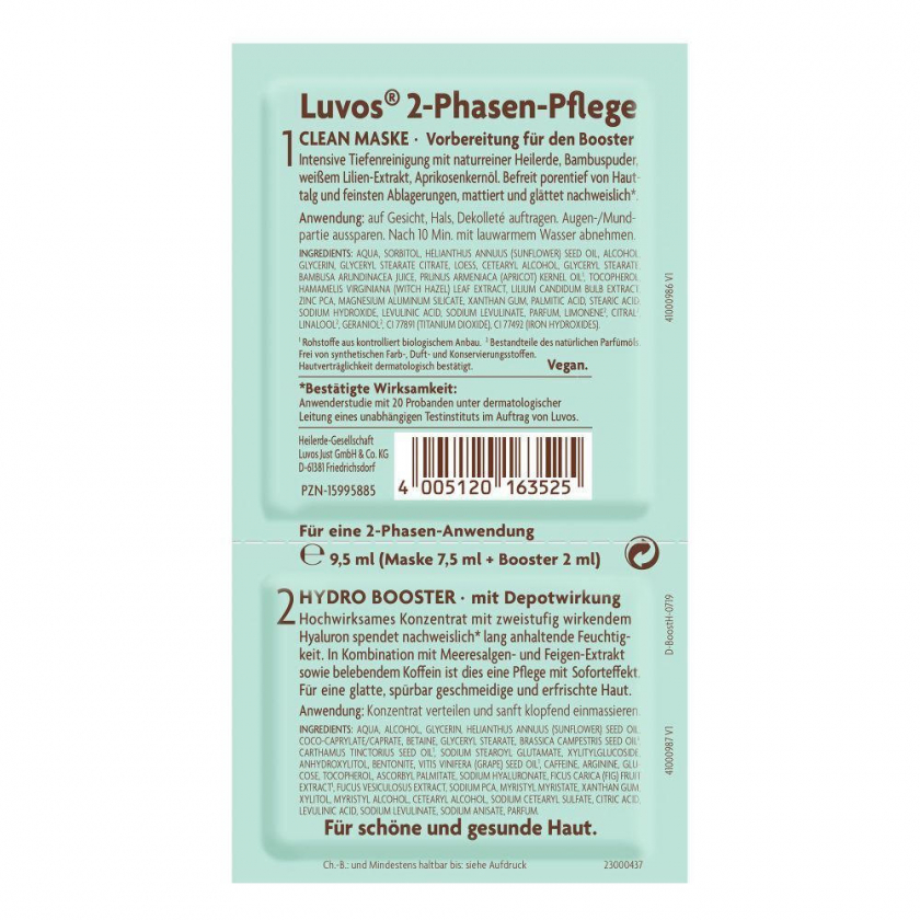 Двухфазная уходовая маска Luvos с очищающей маской и гидро-бустером для мгновенного освежения и увлажнения кожи. Натуральная косметика из Германии для всех типов кожи, веганская и без вредных добавок.