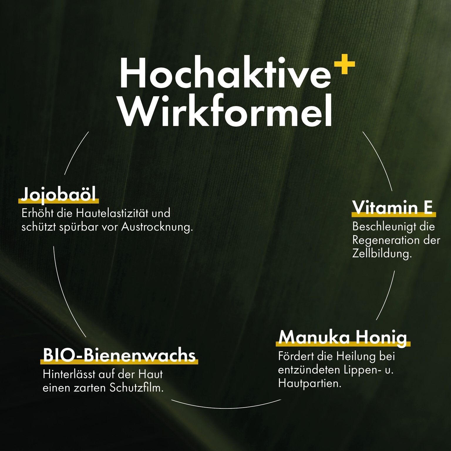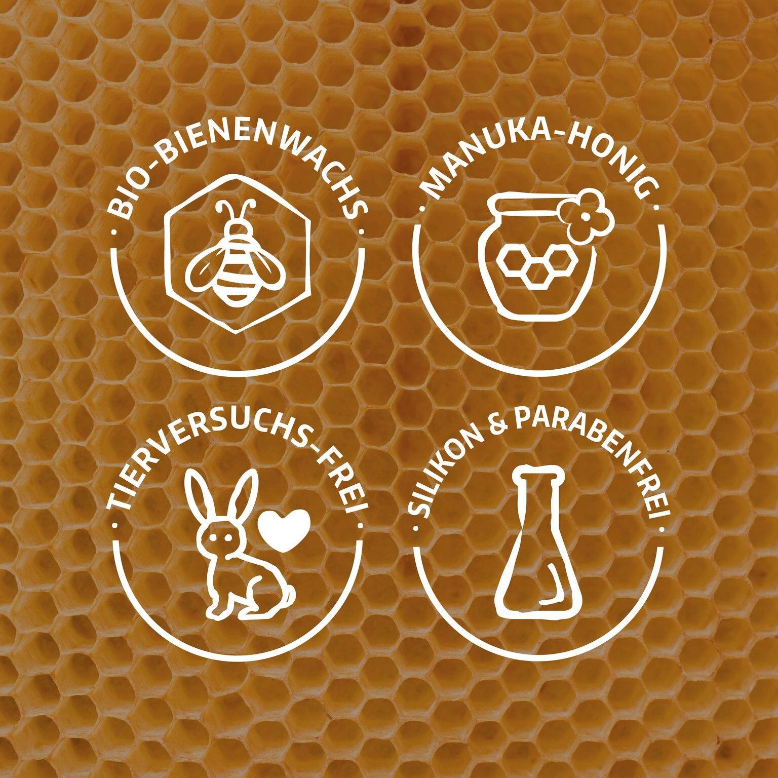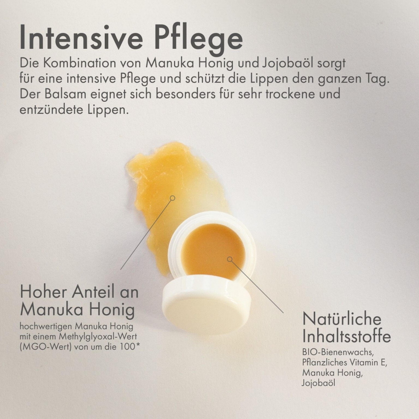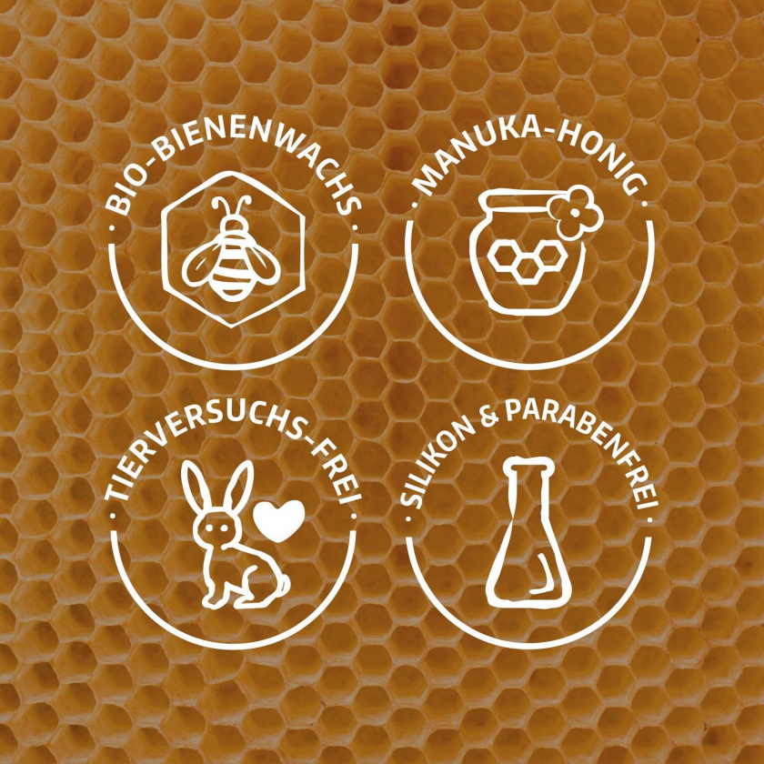 MANUKA Honig Lippenbalsam - бальзам для губ с манука-медом для ухода и защиты нежной кожи губ. Обеспечивает увлажнение, питание и восстановление сухих и потрескавшихся губ. Подходит для ежедневного использования в любое время года.