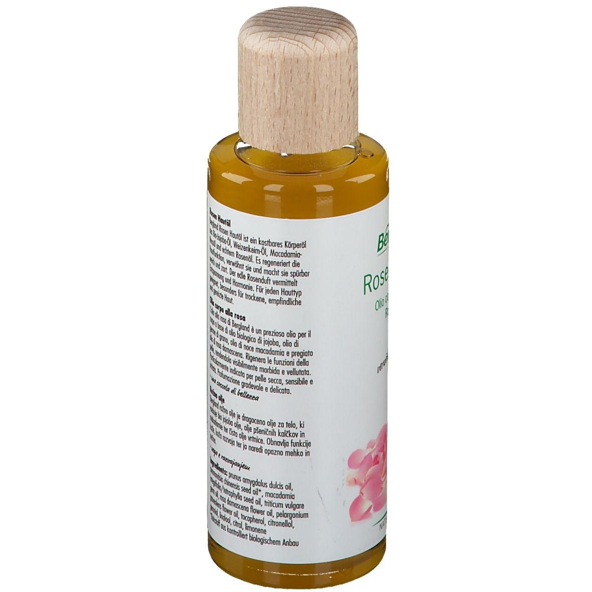 Rosen-Hautöl - натуральное масло для ухода за кожей от Bergland. Содержит смесь органических масел жожоба, макадамии, зародышей пшеницы и настоящее розовое масло. Регенерирует кожу, успокаивает раздражения, смягчает и увлажняет. Подходит для чувствительной, склонной к аллергии и сухой кожи. Сертифицированная натуральная косметика BDIH, без искусственных масел, консервантов и парфюма. Веганский продукт.