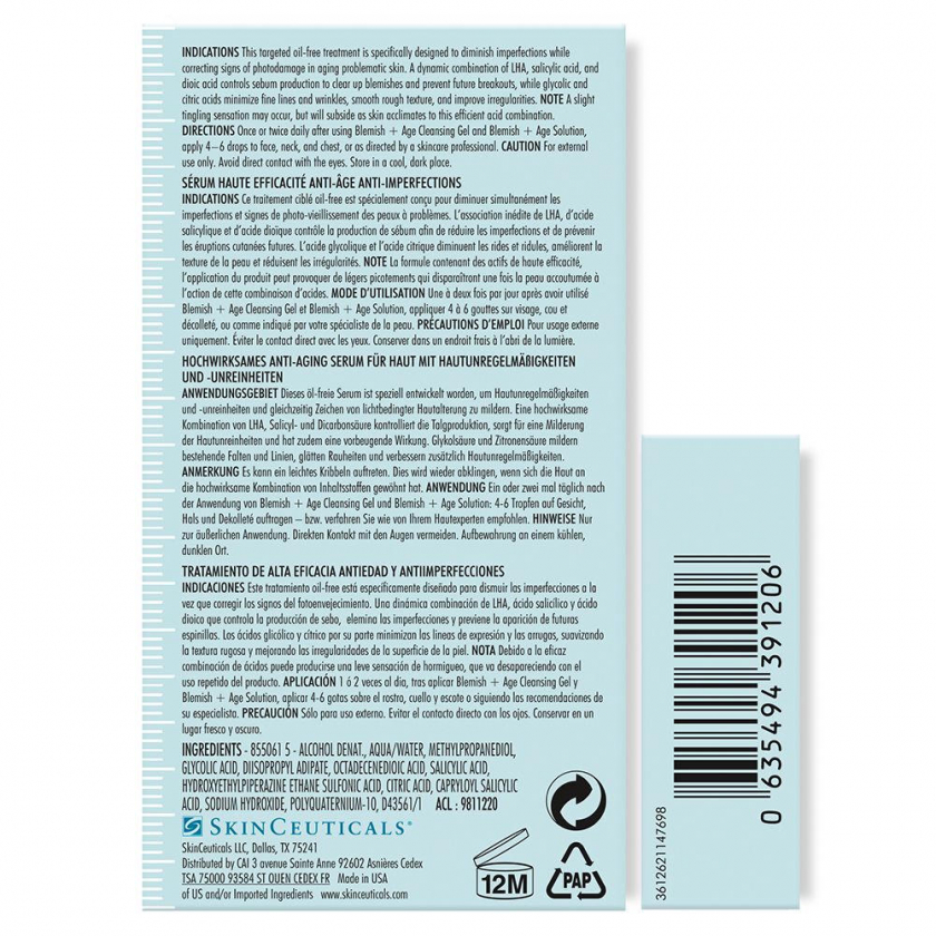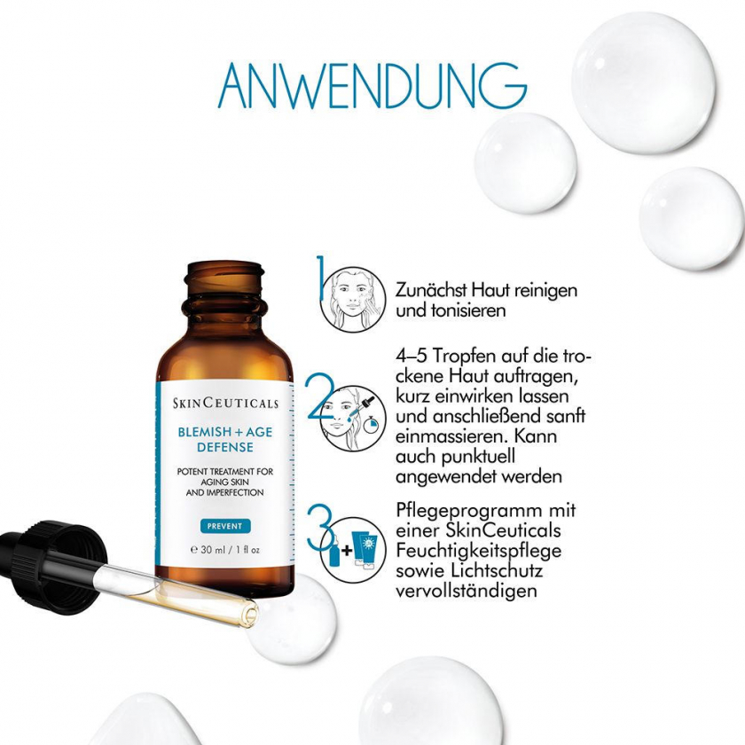 Сыворотка SkinCeuticals BLEMISH + AGE DEFENSE для проблемной и склонной к акне кожи с антивозрастным эффектом. Мягко отшелушивает, регулирует выработку себума, борется с несовершенствами и признаками старения, выравнивает тон и текстуру кожи. Подходит для жирной и комбинированной кожи.