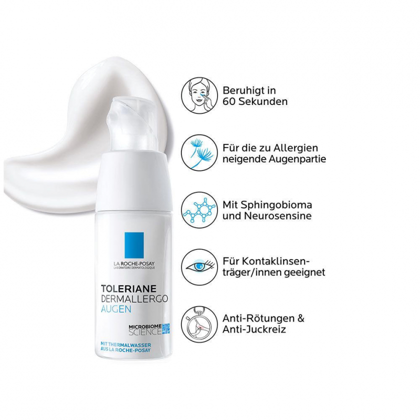 Увлажняющий и успокаивающий крем для глаз Toleriane Dermallergo от La Roche Posay специально разработан для чувствительной и склонной к аллергии кожи вокруг глаз. Содержит термальную воду La Roche Posay, пробиотическое Sphingobioma, Neurosensine и ниацинамид. Успокаивает раздражения, зуд и покраснения, укрепляет кожный барьер и поддерживает микробиом кожи. Не содержит отдушек и спиртов, протестирован под дерматологическим и офтальмологическим контролем.