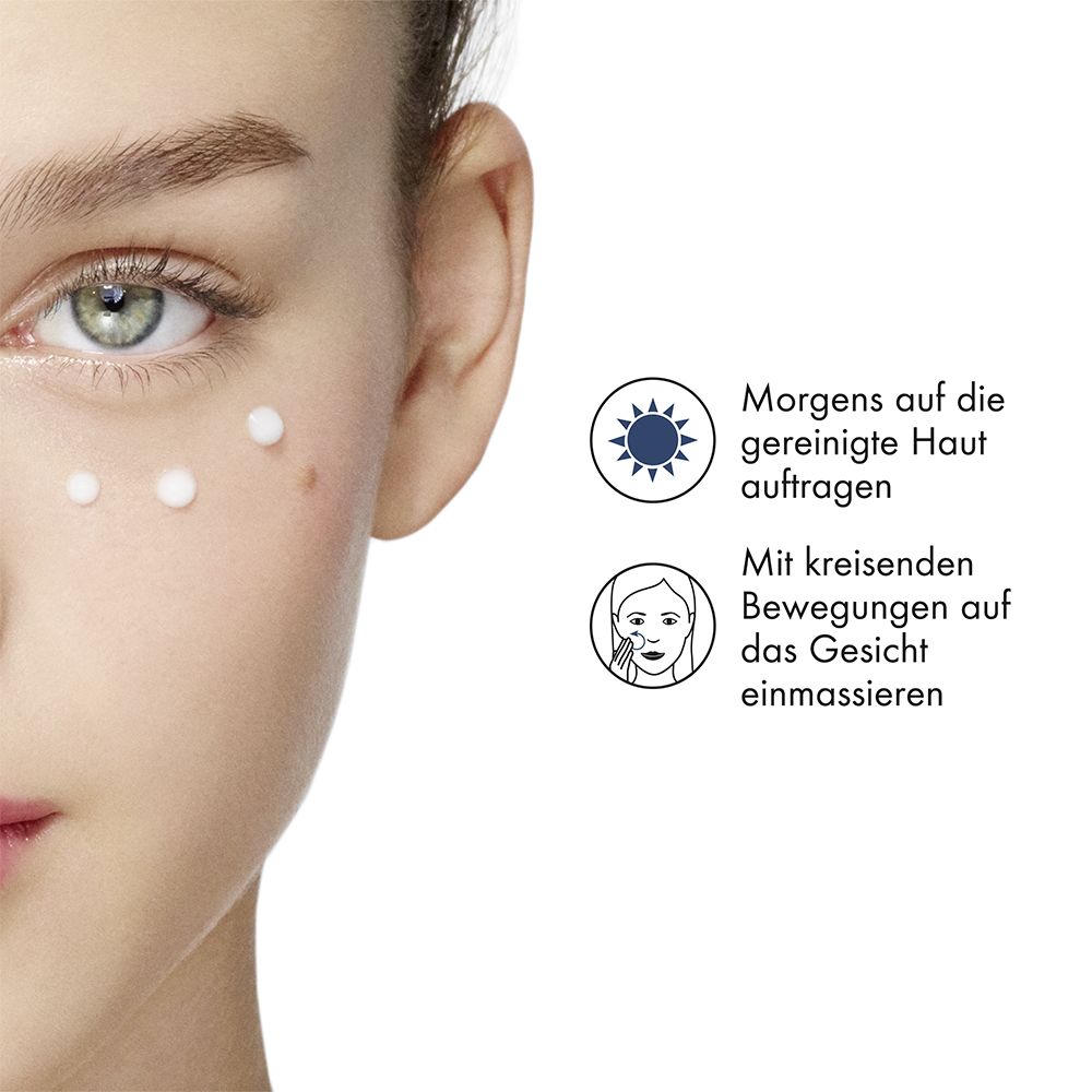 Наносить ежедневно утром и вечером на очищенную кожу лица, шеи и декольте, мягко массируя