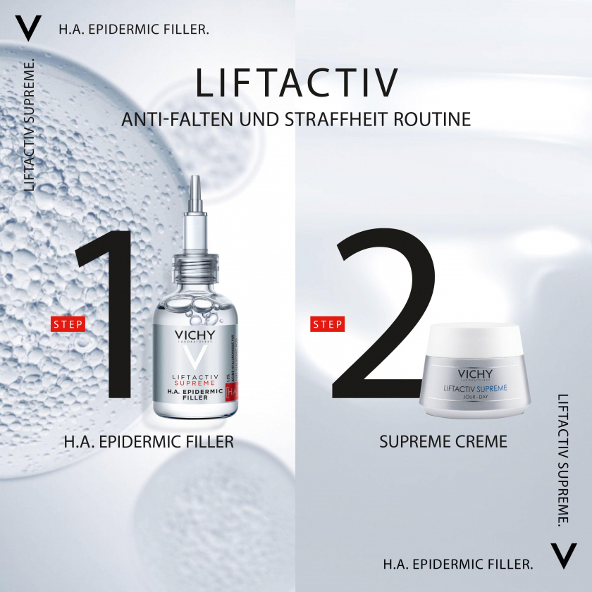 Vichy Liftactiv Supreme Hyaluron Serum - высококонцентрированное антивозрастное сыворотка с гиалуроновой кислотой и витамином C. Заполняет дефицит гиалурона в коже, разглаживает морщины, укрепляет кожный барьер и придает коже упругость. Легкая текстура быстро впитывается, подходит как основа под макияж.