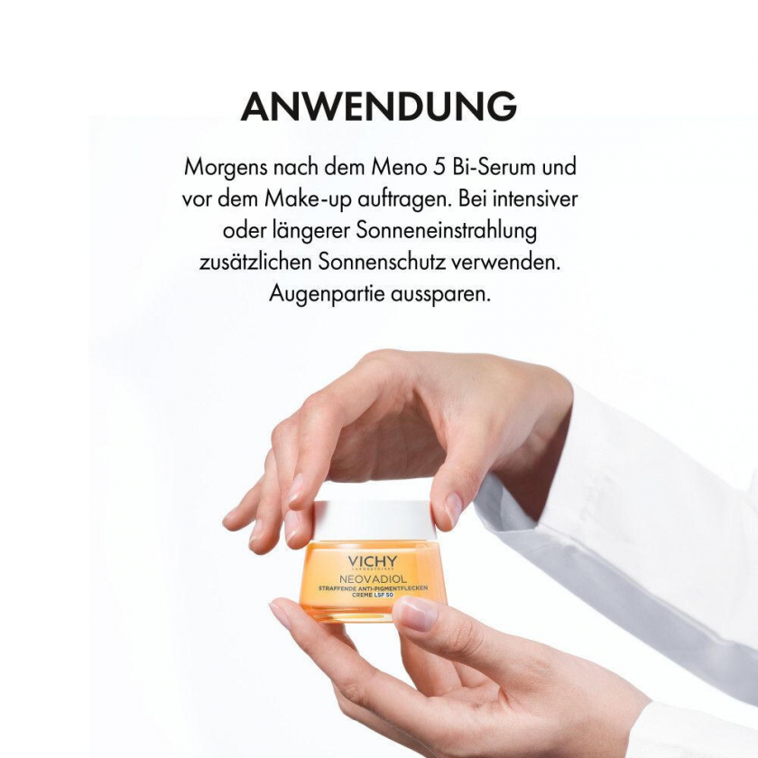 Vichy Neovadiol Anti-Pigment LSF50 - дневной крем с SPF 50 для зрелой кожи после менопаузы. Тройное anti-age действие: борется с пигментными пятнами, подтягивает кожу и разглаживает морщины. Содержит проксилан, экстракт кассии, гиалуроновую кислоту и ниацинамид. Защищает от UVA/UVB лучей, содержит термальную воду Vichy. Подходит для чувствительной кожи.