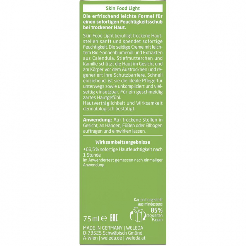 Weleda Skin Food Light - intensive, schnell einziehende Feuchtigkeitspflege für Gesicht und Körper