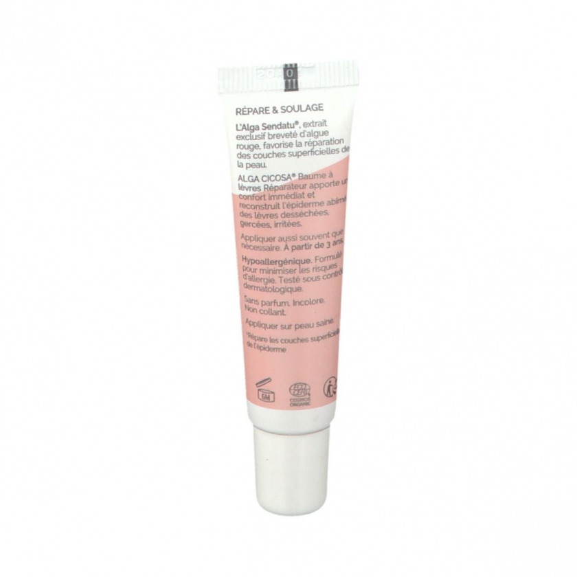 ALGA CICOSA Lippenbalsam - регенерирующий гипоаллергенный бальзам для губ от Laboratoires de Biarritz. Подходит для всей семьи (дети с 3 лет и взрослые), включая беременных и кормящих женщин. Эффективно ухаживает за сухими, потрескавшимися и раздраженными губами, содержит запатентованный натуральный компонент Alga-Sendatu®. Без отдушек, без алкоголя, не липкий, бесцветный.