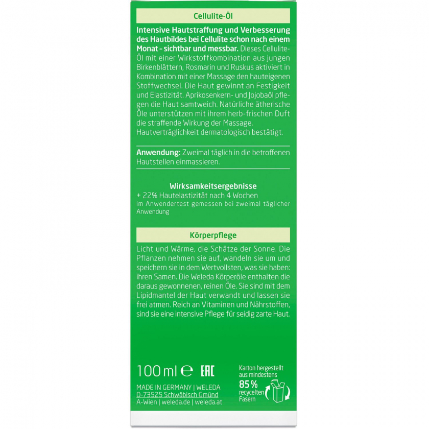 Weleda Cellulite-Öl Birke - glättet, strafft und verbessert das Hautbild bei regelmäßiger Massage