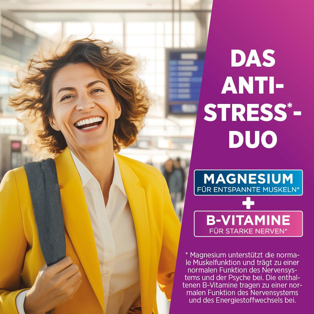 Магния карбонат, наполнитель (целлюлоза), оксид магния, соли магния лимонной кислоты, стабилизатор (гидроксипропилметилцеллюлоза), витамин B1, витамин B2, витамин B6, витамин B12, наполнитель (фосфаты кальция), антислеживающие агенты (моно- и диглицериды жирных кислот, соли магния жирных кислот, сшитая карбоксиметилцеллюлоза, диоксид кремния, поливинилполипирролидон), стабилизатор (гидроксипропилцеллюлоза), покрытие (гидроксипропилметилцеллюлоза, целлюлоза, уксуснокислые эфиры моно- и диглицеридов жирных кислот), красители (индигокармин, кармин)
