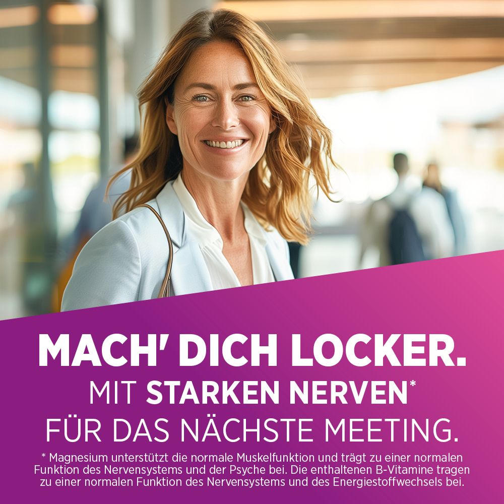 Состав: Магния карбонат, наполнитель (целлюлоза), оксид магния, соли магния лимонной кислоты, стабилизатор (гидроксипропилметилцеллюлоза), витамин B1, витамин B2, витамин B6, витамин B12, наполнитель (фосфаты кальция), антислеживающие агенты (моно- и диглицериды жирных кислот, соли магния жирных кислот, сшитая карбоксиметилцеллюлоза, диоксид кремния, поливинилполипирролидон), стабилизатор (гидроксипропилцеллюлоза), покрытие (гидроксипропилметилцеллюлоза, целлюлоза, уксуснокислые эфиры моно- и диглицеридов жирных кислот), красители (индигокармин, кармин)