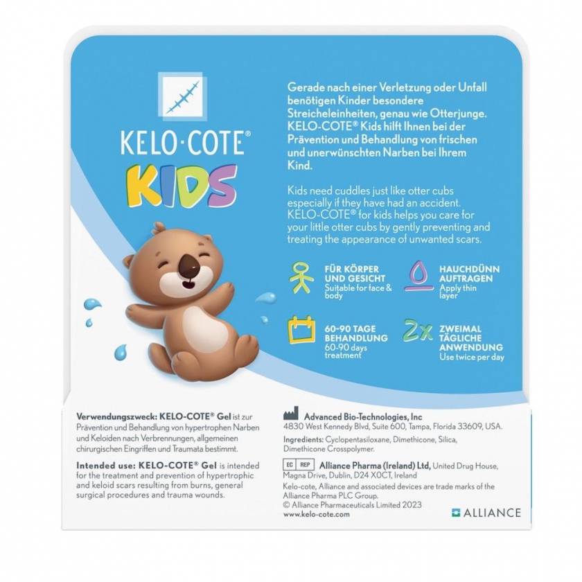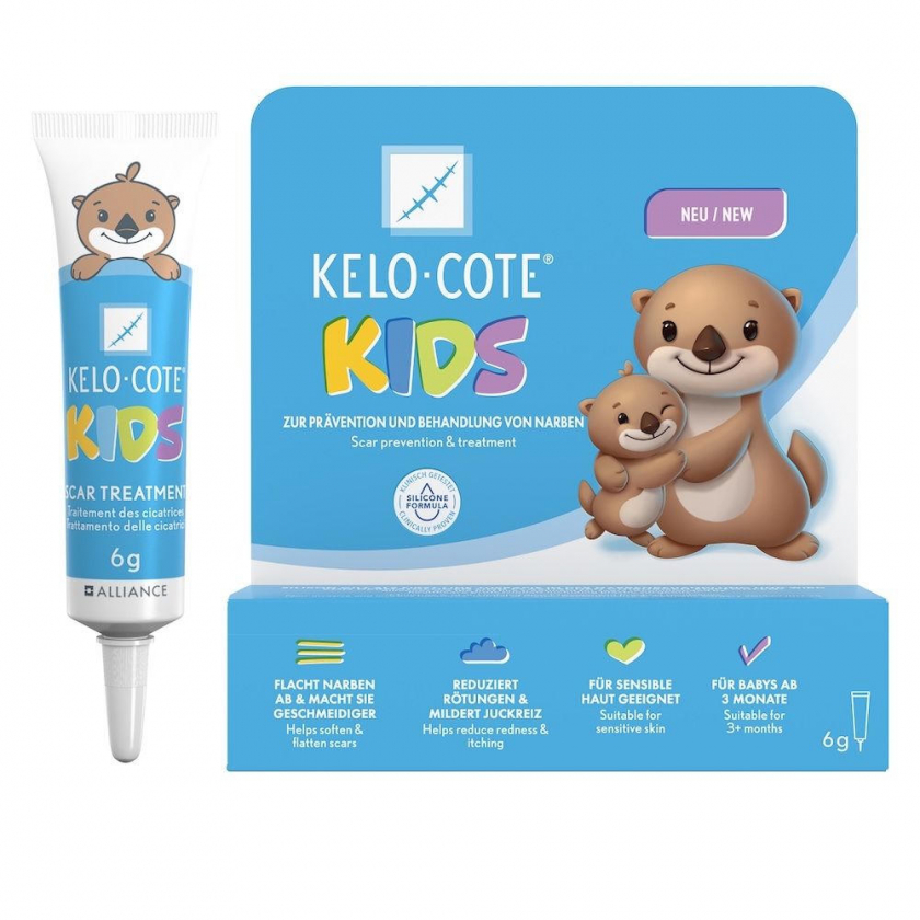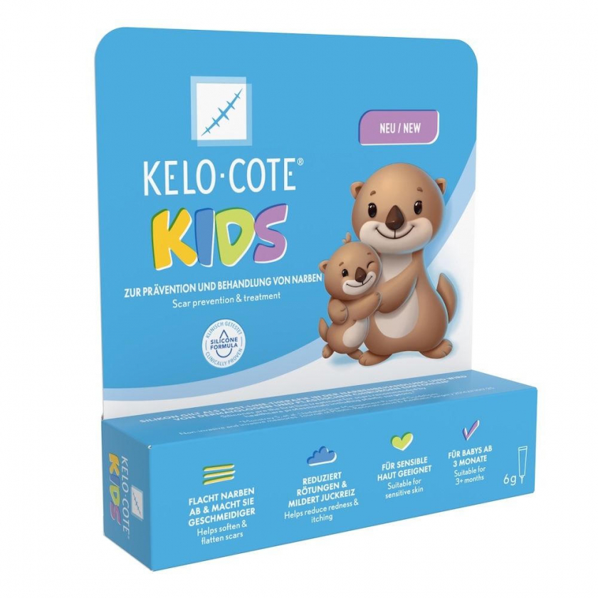 KELO-COTE® Kids Narbengel - специальный силиконовый гель для профилактики и лечения рубцов у детей с 3 месяцев. Делает рубцы более плоскими, мягкими и гладкими, уменьшает покраснение и зуд. Без парабенов, парафинов, отдушек и ПЭГ-эмульгаторов.