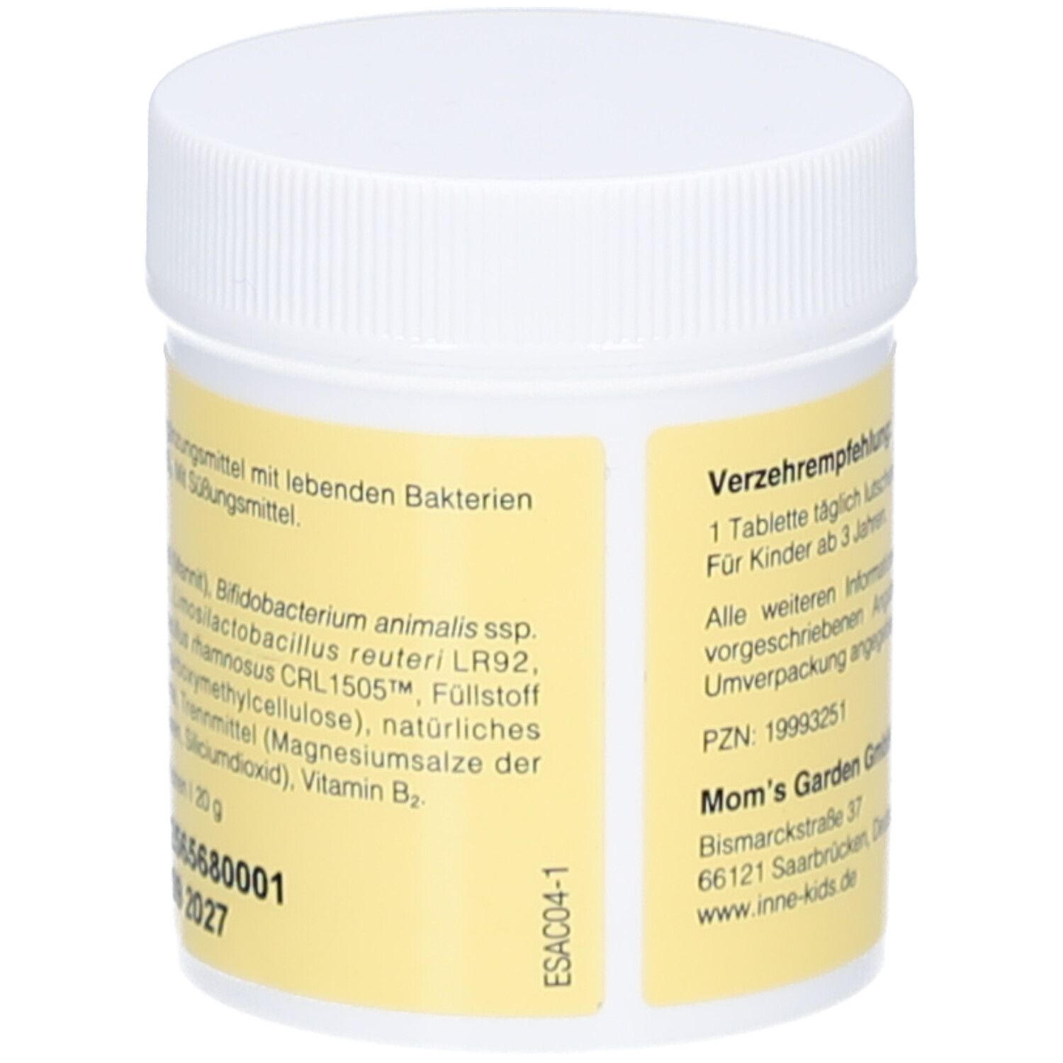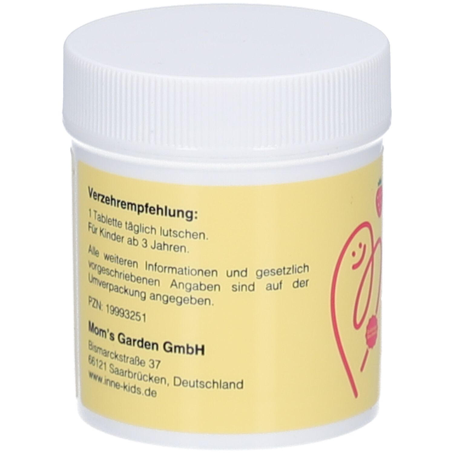 inne® Mikrobiom Balance - это пищевая добавка в виде шмельттаблеток с клубничным вкусом для детей от 3 лет. Содержит 1 миллиард живых бактерий innebiome™ и витамин B2 для поддержания нормального состояния слизистых оболочек, включая слизистую кишечника. Без сахара, веганский, без глютена и лактозы.