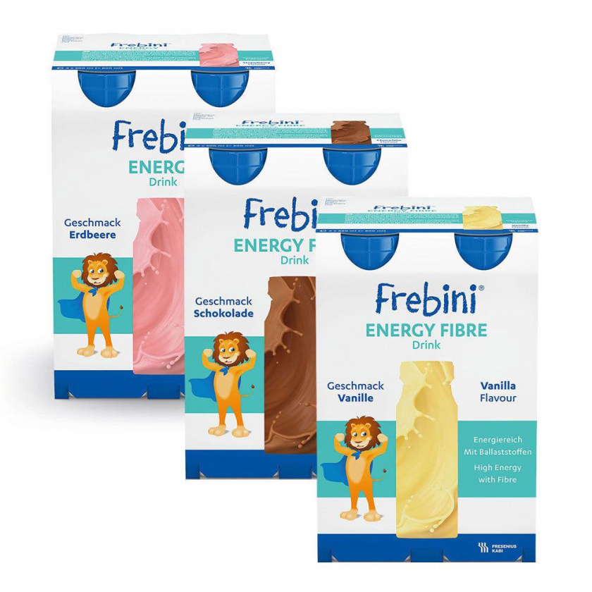 Frebini Energy Fibre Trinknahrung Schokolade, Vanille, Erdbeere