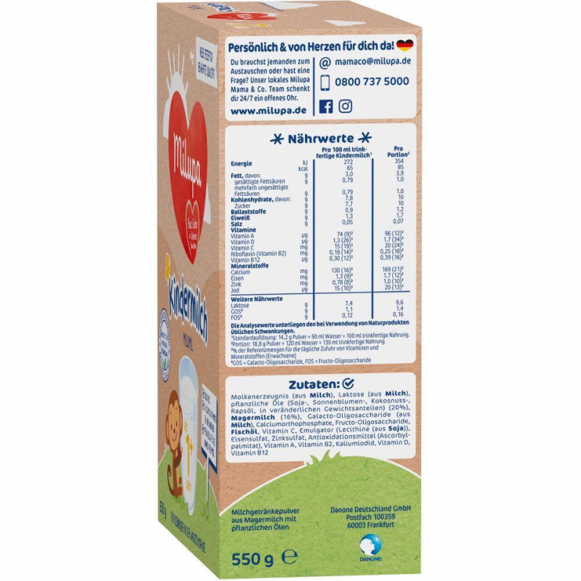Детская молочная смесь Milupa MILUMIL для детей от 1 года с кальцием, витамином D и йодом. Обогащена витаминами, минералами и пребиотиками для поддержания здорового развития ребенка. Содержит рыбий жир как источник омега-3 жирных кислот. Производится в Германии.