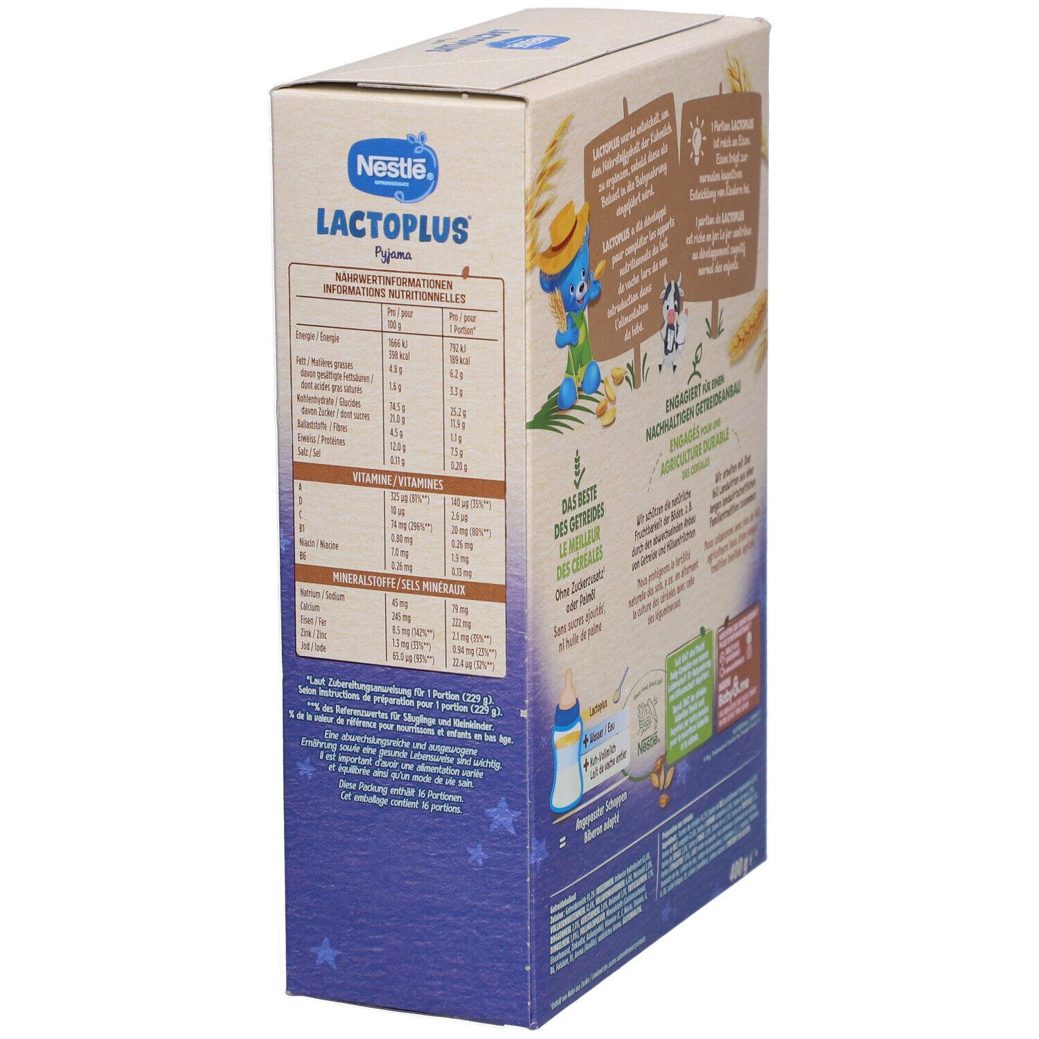 Nestlé Lactoplus Malt - детское питание для детей 1-3 лет, которое разводится с коровьим молоком для создания сбалансированной молочной смеси. Содержит зерновые муки, сухое молоко, витамины и минералы. Без добавления сахара, обогащено витаминами A, C, D, кальцием и железом.
