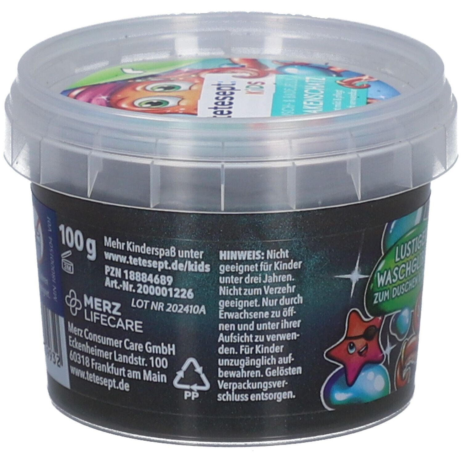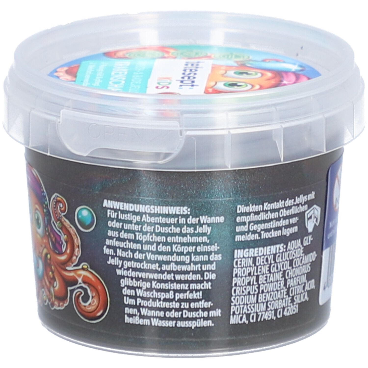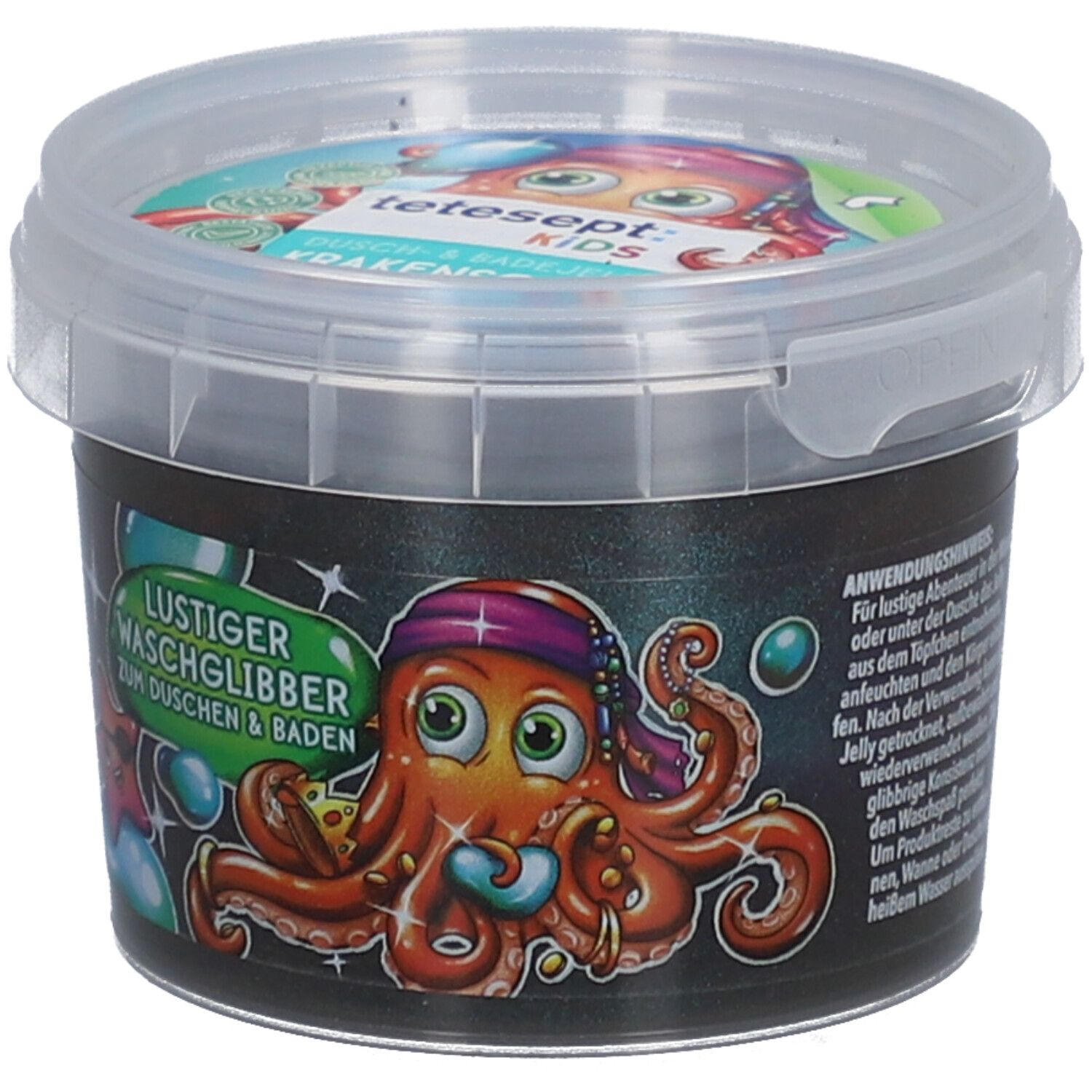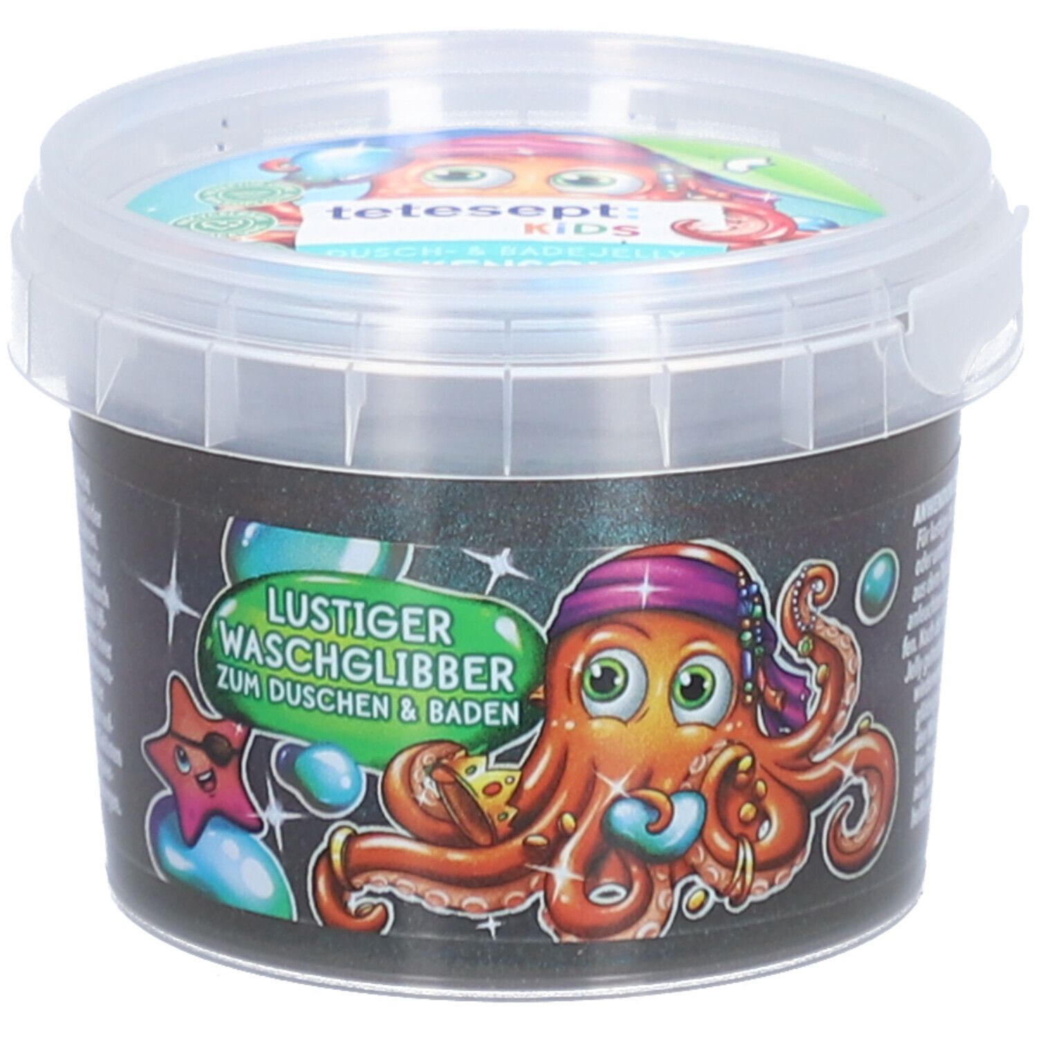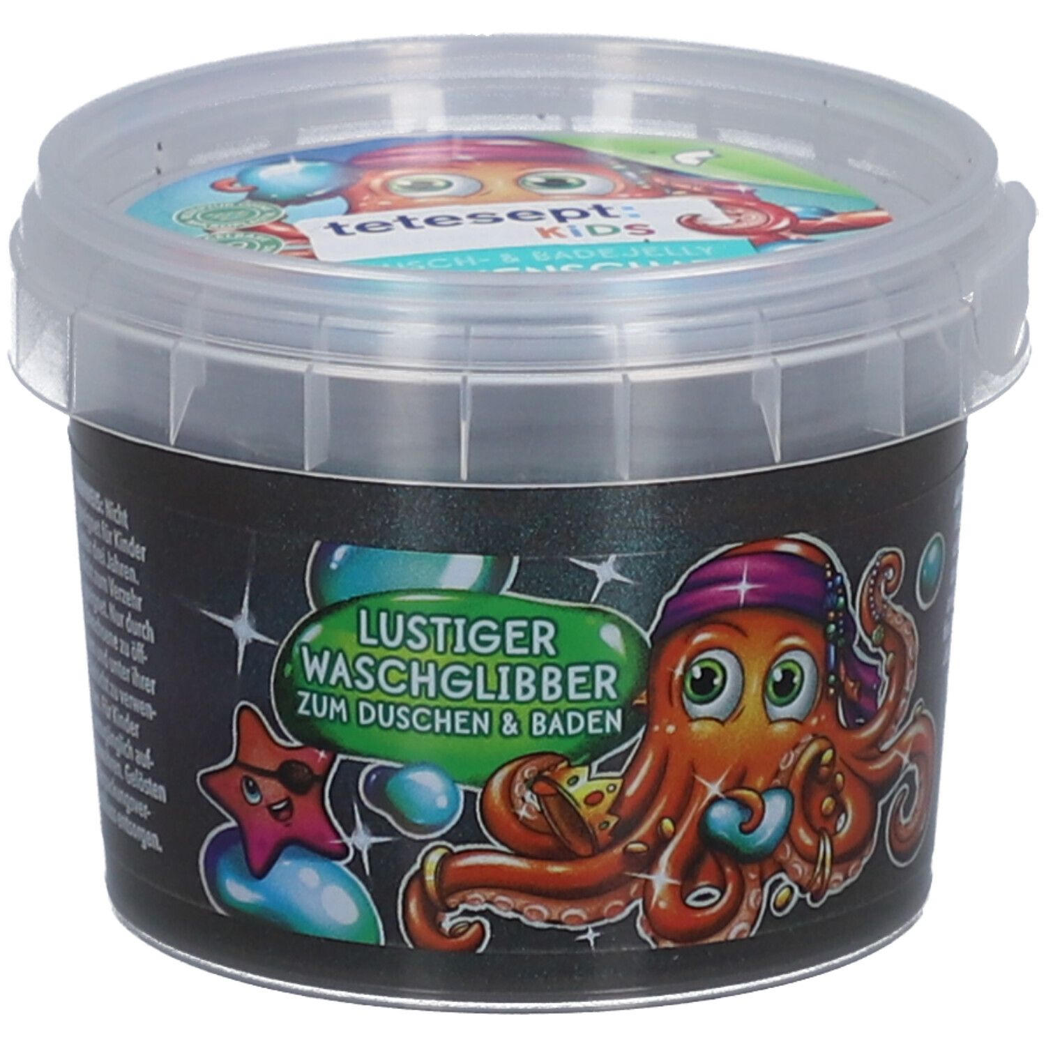 Детское гель для душа и ванны Krakenschatz от tetesept с желеобразной текстурой для веселого купания. Подходит для детей от 3 лет, не содержит микропластика, дерматологически протестирован. Многоразовое использование после высыхания. В упаковке 6 контейнеров по 100 г.